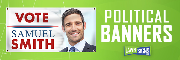If you are running for office, make sure people know by displaying political banners in your community! You can include your name, what office you are running for, and what you stand for on the banner. Including a photo of you or your family will help bring awareness to your campaign.
